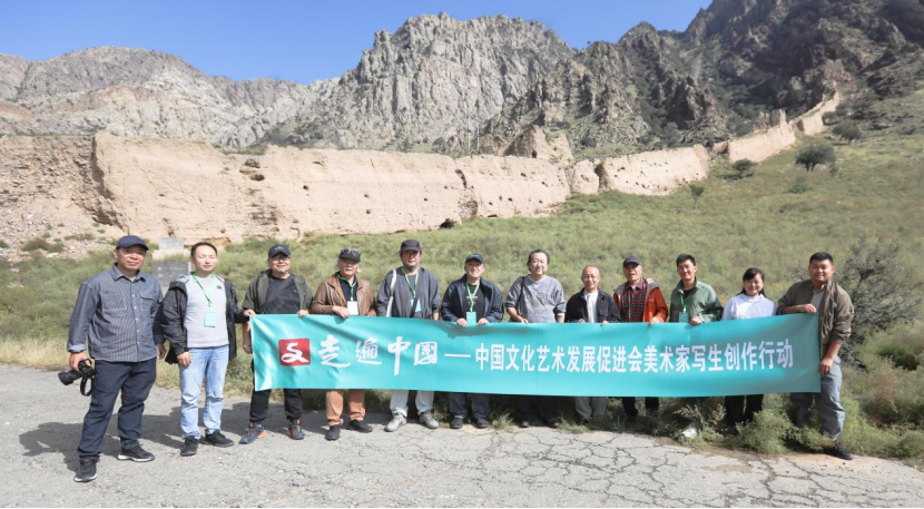 9月21日至28日,“走遍中国——中国文化艺术发展促进会美术家写生创作行动”在宁夏展开,中国文促会主席杨晓阳、“走遍中国”行动执委会主任张江舟,著名艺术家崔晓东、老圃、马海方、陈琪共同参与了宁夏站为期8天的写生创作行动?;疃校帐跫易呓乩忌?,感受“贺兰山阙,雄关屏障”的磅礴壮美;踏上古老而神秘的西夏陵区,倾听岁月的变迁与历史的沧桑;探访贺兰岩画,在石壁刻痕中揣摩古人心迹;走进农家小院,与回民朋友共话桑榆……神奇宁夏,拨动到访每位艺术家的心弦,绘就一幅幅抒情的画卷。