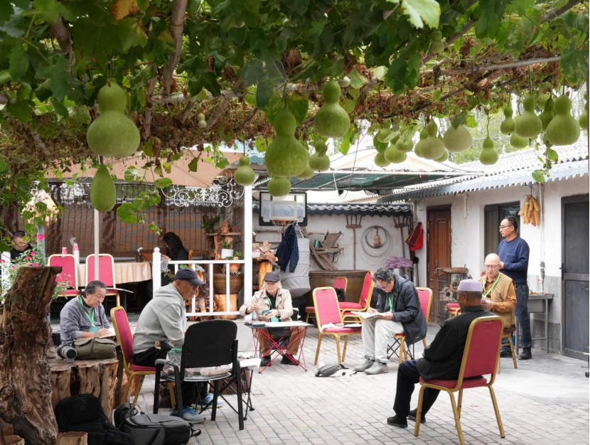 在贺兰县关渠村,艺术家走进农家小院,悠闲的农院、浓郁的果香、斑斓的菜园,让艺术家近距离感受“塞上江南”新农村的美好生活。艺术家们展开画纸:张江舟用当代的笔墨为质朴的村民留影;马海方对农院的所有都表现出浓厚的兴趣,从墙上的农具到笼中的鹦鹉,都是他描绘的对象;老圃在村民菜园中央坐了整整一个下午……杨晓阳则用水墨的方式记录下现场一切。